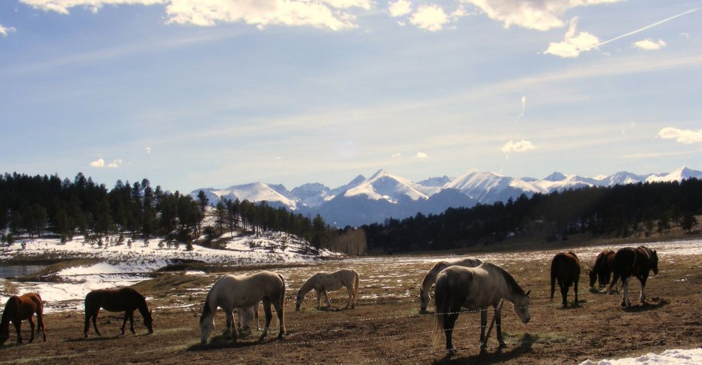 Kay's Horses so pretty image was a nice scene, but the blown out clouds at the top of the image grabbed your attention away from the horses and the mountains.  I thought the image worked better when these blown out clouds were cropped out of the image.  I've posted the cropped image just below the original.