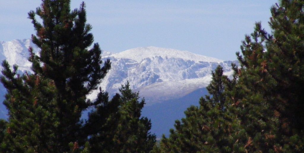 Kay's great view image was a panoramic crop of a nice view.  To be honest, cutting off the top of the tree on the left bothers me, and makes it feel like the image is incomplete.  I thought the image was a little soft, and so added a little selective sharpening by using layer masks and smart sharpen in Photoshop.  I was careful not to sharpen the sky or the lower parts of the peak, since that brought out too much noise in the image.  Here's the original, followed by the sharpened version.