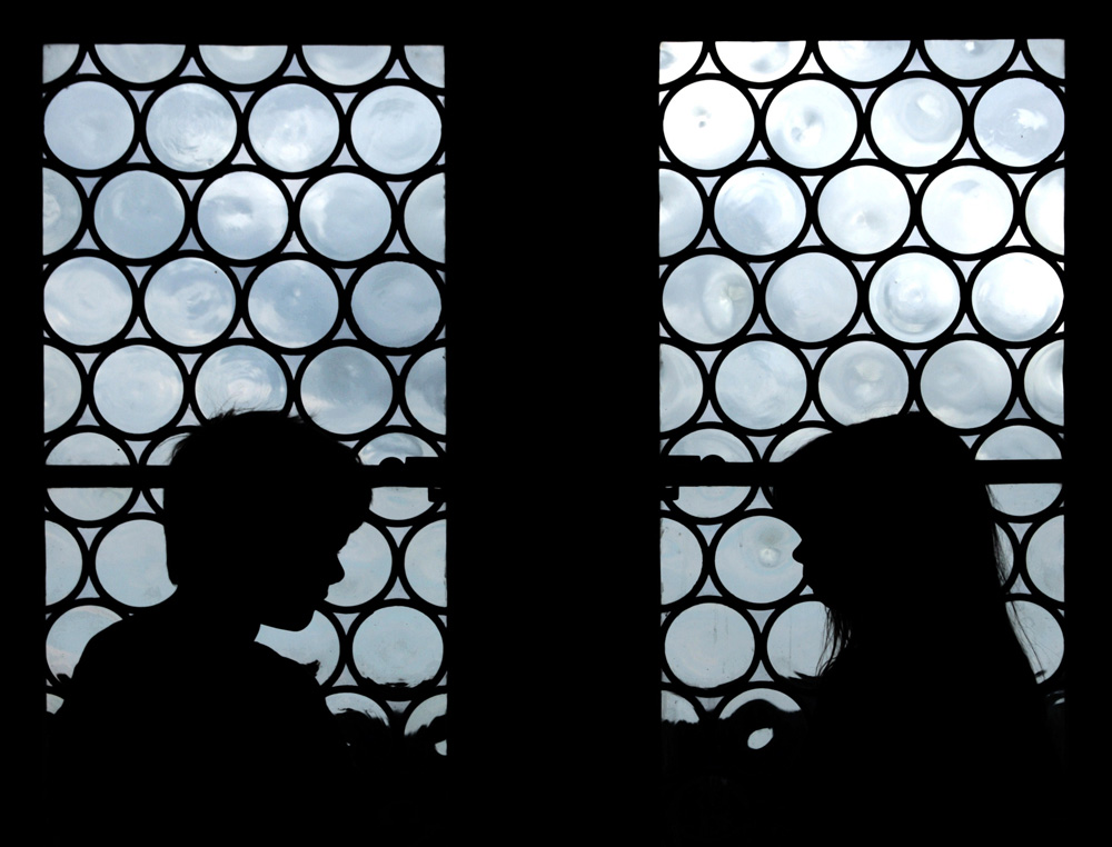 Michele's image of Lauren and Justin was a captivating composition that worked on two levels.  The strong patterns of the frames around the bottle bottoms served to grab the viewers attention, and the silhouettes of Lauren and Justin added an interesting human element to the scene.  (To see what I mean about "grabbing the viewers' attention, just look at the thumbnails of the assignment images in the Gallery.  This composition stands out from all the others.)  The juxtaposition of the two silhouettes (the silhouette of the window and the silhouette of Lauren and Justin) makes me wonder what the connection is between the two?  It also made me wonder what the children were doing.  (Children don't just sit and look at each other do they?  They had to be doing something, but I couldn't discern what it was based on the silhouette.)  I imagined that they were playing chess or some ancient board game while sitting in front of the castle windows.  :)  This was an intriguing and very well executed image that very effectively captured the viewers interest.