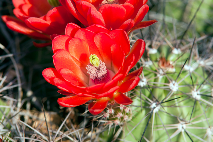 Beauty in the desert to eliminate potentially distracting high contrast out-of-focus needles on the left side of the image. I also felt this proposed crop provided a composition that better balanced the flowers with the green cactus in the background on the right. (The colors and clarity in this image of the cactus flower were stunning!)